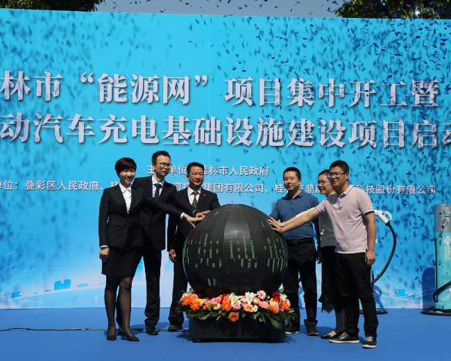 4月28日,桂林市“能源网”项目集中开工暨桂林市电动汽车充电基础设施建设项目启动仪式在桂林北站站前广场举行,桂林北站、鼎晟大厦、鼎耀大厦、魅力花园、雁山大埠5个电动汽车充电站项目同时开工。市叠彩区、北门街道及集团公司相关负责人共同出席启动仪式。