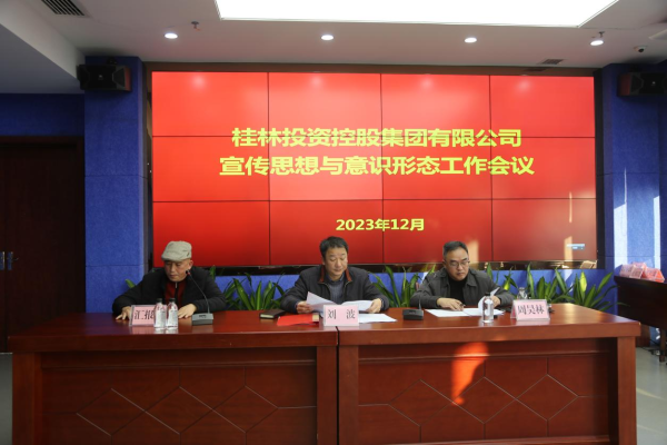 12月26日,2023年桂林投资控股集团有限公司宣传思想与意识形态工作会议在集团公司总部召开,会议对当前意识形态形势进行了分析研判并对下一阶段工作进行了布置。集团公司党委副书记刘波,各单位党组织书记、副书记、党办负责人及负责宣传和意识形态工作的工作人员参加会议。