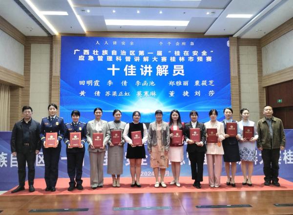 经过集团公司内部评选和市国资委推荐,集团公司下属鼎晟能源公司田明霞、机场路公司刘莎参加自治区第一届“桂在安全”应急管理科普讲解大赛桂林市预赛,从全市21名参赛选手中脱颖而出,获得“十佳讲解员”称号。