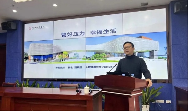 本次培训邀请到桂林理工大学心理健康研究所所长、硕士生导师,中国心理学会注册心理师欧阳胜权教授担任主讲??纬讨?,欧阳教授以“学会情绪调控,守护心理健康”为主题,通过生动的案例、有趣的互动和专业的讲解,向干部职工们讲授了压力管理、情绪调节、人际关系处理等心理健康知识。