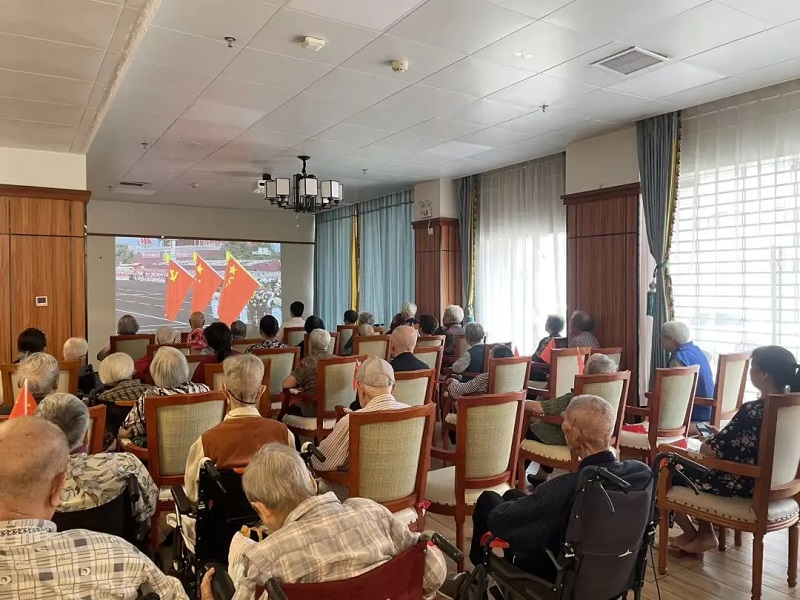 ▲鼎乐公司活力花园养老公寓组织收看大会实况转播