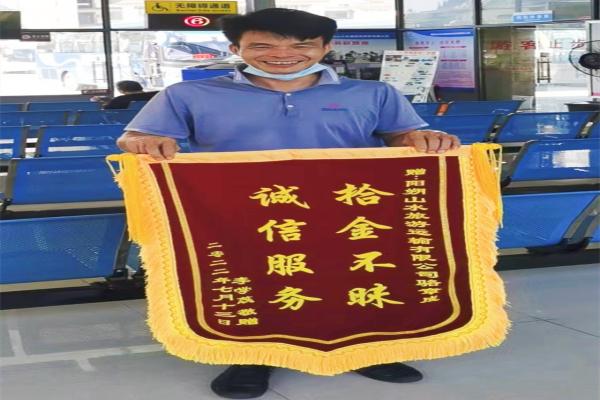 7月22日,游客李先生将一面印有“拾金不昧 诚信服务”的锦旗邮寄送到阳朔山水交运公司驾驶员骆章成手中,对骆章成拾金不昧的行为表示诚挚的谢意。
