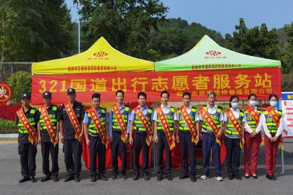 为推进志愿服务常态化建设,鼎捷路桥公司以新时代文明实践站为依托积极组织活动,组成“321国道出行志愿者服务站”,在雁山收费站广场为过路司乘人员提供志愿服务。