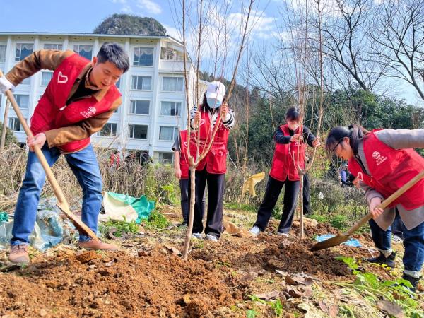 活动现场,公司员工互相配合,挥锹铲土、扶苗填坑、培土浇水,干劲十足,种下一棵棵希望的树苗。“看看自己亲手种下的树苗,为桂林增添了一抹绿色,特高兴。”供应链公司员工说道。