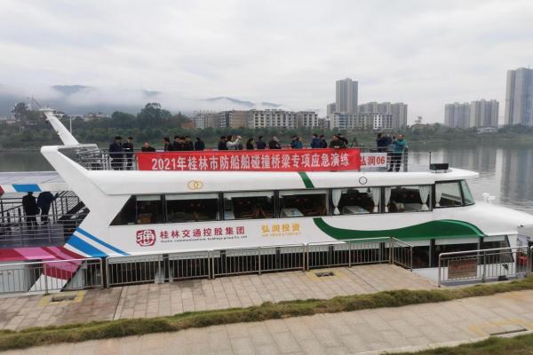 11月19日,2021年桂林市防船舶碰撞桥梁专项应急演练活动在平乐县印山旅游码头桂江水域启动,16家单位、7艘船艇、5辆应急车、100余人参与此次演练。