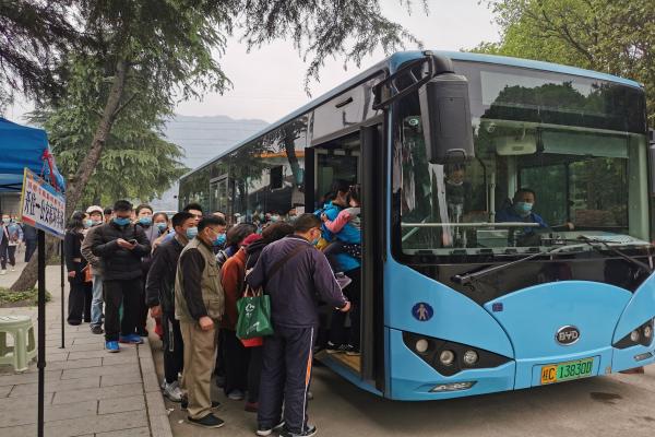 清明期间,公交集团严格落实疫情防控有关要求,每日安排40余名工作人员到发车现场维持秩序,引导市民文明乘车,为市民提供安全有序的乘车环境。(公交集团 阳娟)
