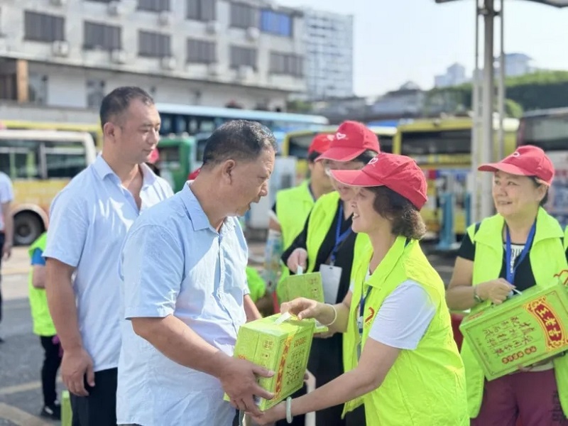 活动现场,文明乘客们与驾驶员亲切攀谈,关切地询问他们的日常工作与生活情况。"我们每天上下班都坐公交,看着师傅们在闷热车厢里一坐就是几小时,后背的汗衫从没干过。"参与活动的周女士边分发饮品边说“这些物资都是乘客们自掏腰包购置的,就是想让师傅们知道,他们的辛苦我们都看在眼里、记在心里。”
