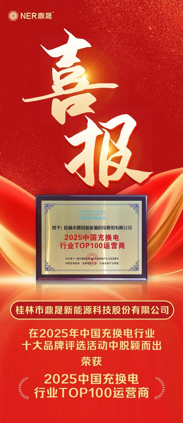 喜报 | 桂林投资集团鼎晟新能源公司荣获2025中国充换电行业TOP100运营商