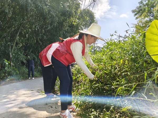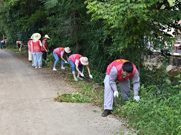 实干是最有力的担当。清理现场热火朝天:一组党员分工协作,手持镰刀清理路边杂草,遇到顽固草根直接徒手拔除,汗水浸透衣背也毫不停歇;另一组则专注清淤,手握铁锹深入沟渠,彻底铲除积水和淤泥,不放过任何一处卫生死角?;褂卸釉绷嘧爬赝鞠钢录袷?,从塑料瓶到碎纸屑,就连墙角缝、草丛深处的杂物都不遗漏?!耙寰颓宄沟祝荒茉偃么迕裎庑┓承?!”劳动间隙,志愿者们还与村民亲切交谈。贴心的话语、忙碌的身影,让这个普通的清晨充满了温度。