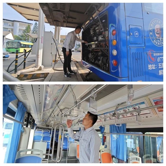 随着驾驶经验的积累,周庆有了不少车辆保养、维护方面的心得。他结合公交车车型特点,总结出一套节能驾驶技巧,既保障了行车安全,又避免了急刹猛油对刹车片和油电造成的损耗。运用这套驾驶技巧,周庆开的柴油车每年节油量达到了600余升,更换纯电动公交车后,年均节电量达800至1000余度,他在桂林公交车辆节能降耗排名中成绩总是名列前茅。